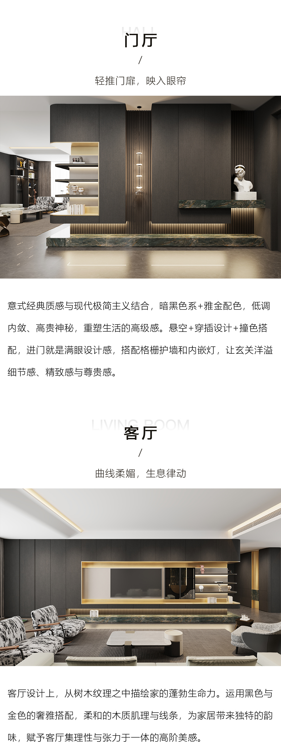 意式極簡宅邸丨暗黑色系+雅金演繹現(xiàn)代豪宅潮流范