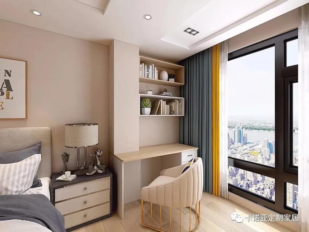 別出心裁地在飄窗邊創(chuàng)造一個小書房區(qū)