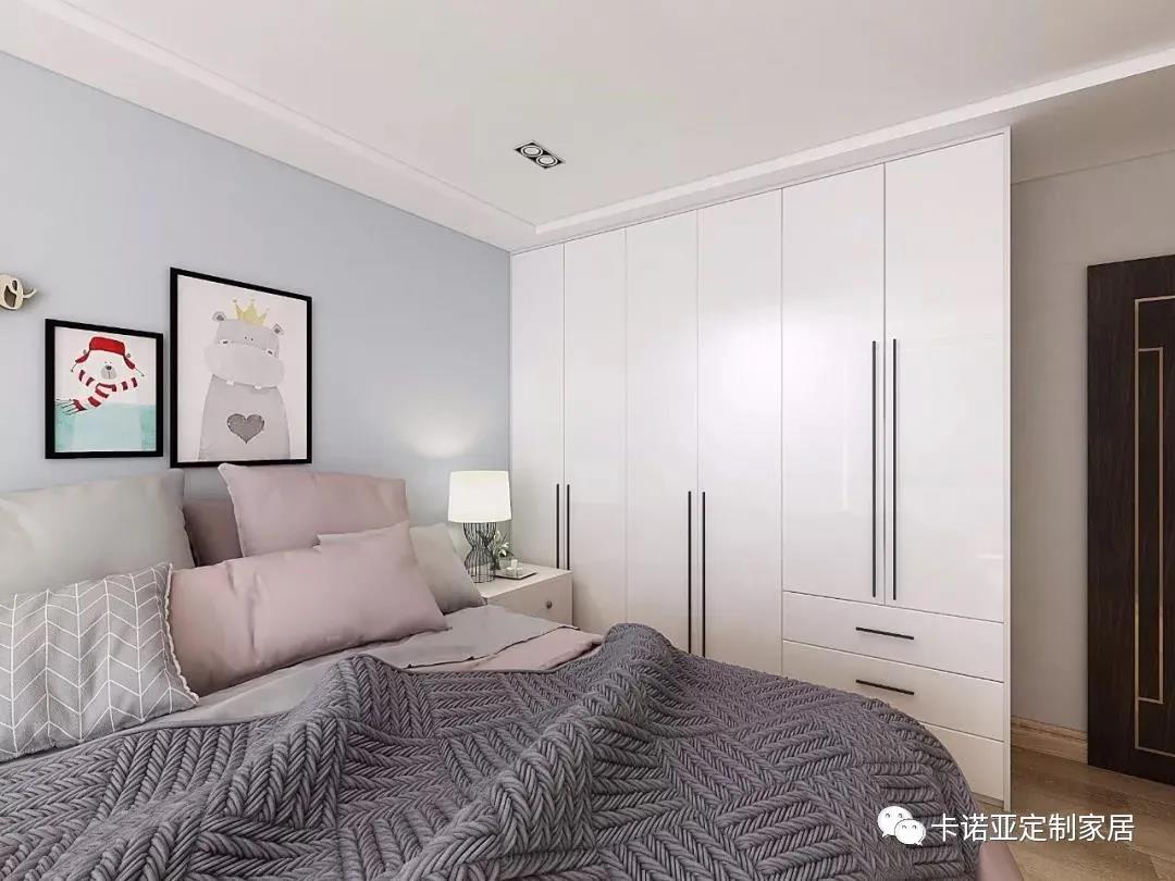 衣柜、護墻板、地板都采用統(tǒng)一的素色