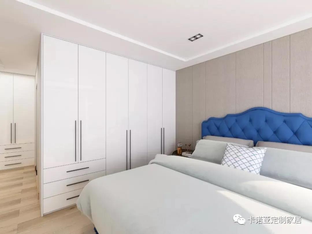 床頭湛藍色點綴,瞬間點亮空間