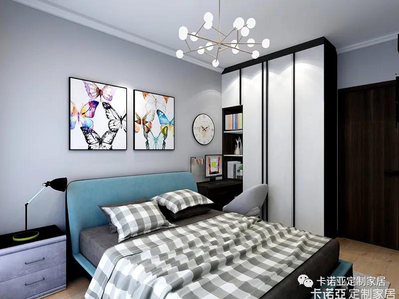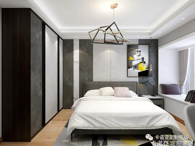 從干凈簡潔的主臥,可以看出這對夫婦的生活審美與需求。一門到頂?shù)碾p飾面門板衣柜,中間不斷開,真正做到簡約大氣。搭配到頂?shù)睦郑w衣柜更統(tǒng)一、視覺更流暢,還讓臥室在視覺和實際感官都更為開敞。