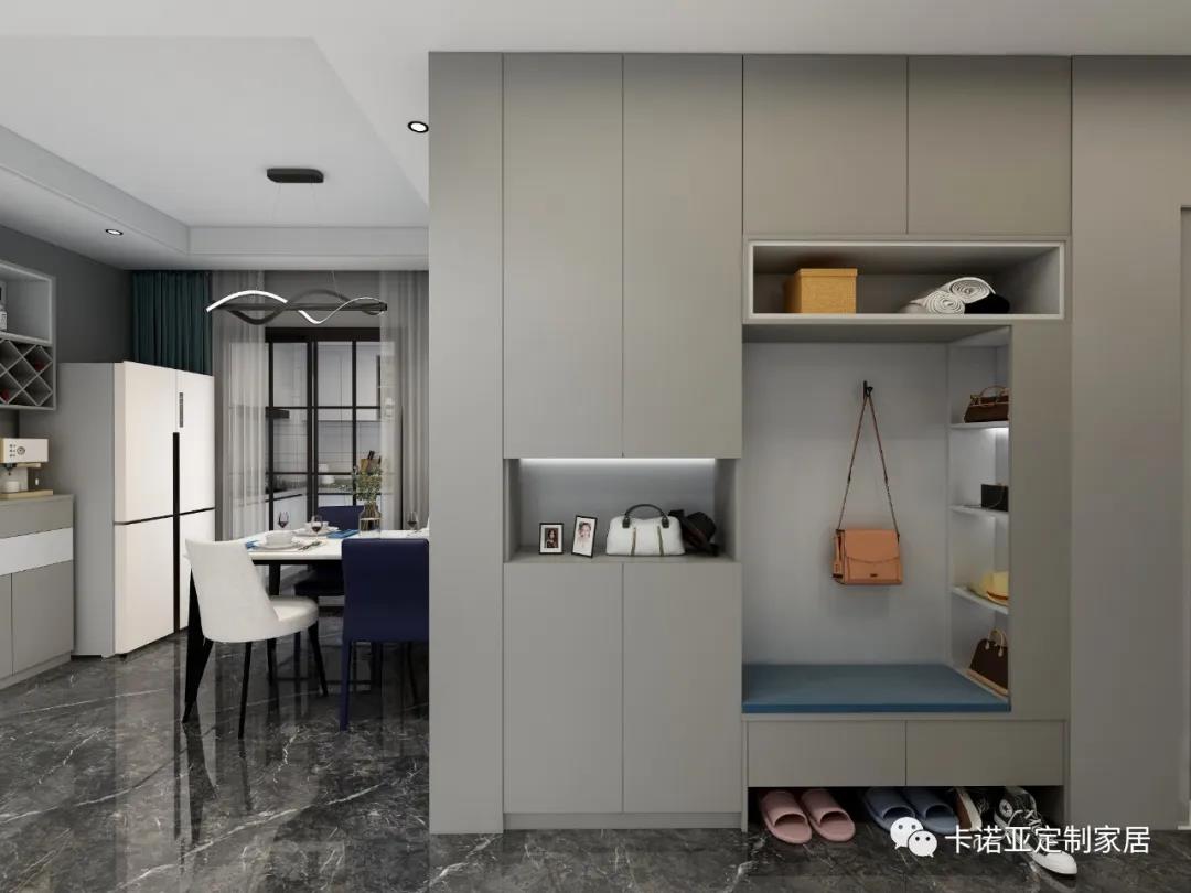 加入“俄羅斯方塊”造型的入戶柜將設計巧思隱于線面的細節(jié)里美觀方便的同時還具備超強收納功能