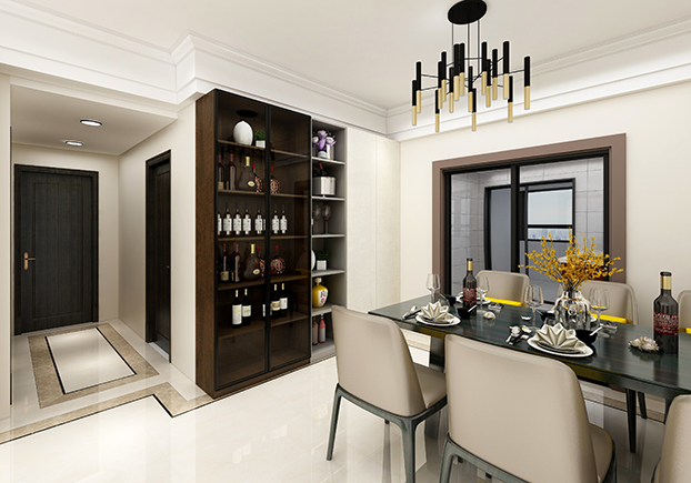 ▲屋主平常喜歡喝點小酒,所以設計師專門定制了一個酒柜,可以放置一些藏酒,透明玻璃窗,一眼望去倒像個裝飾品。