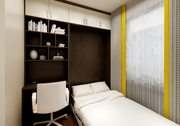 ▲該空間較小,一眼望去可以發(fā)現(xiàn)該空間既能當書房,又能儲物,又可以是一個人的私人空間,家里臨時有客人來還能是一個簡易的單人床,何樂而不為?