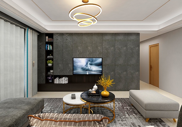 客廳主色調(diào)為高鉆灰,電視背景墻同時(shí)也是儲(chǔ)物柜,左側(cè)開(kāi)放右側(cè)封閉,裝飾的同時(shí)儲(chǔ)物能力MAX,剛好家里孩子多,零零碎碎的小東西都能藏起來(lái)啦!
