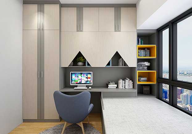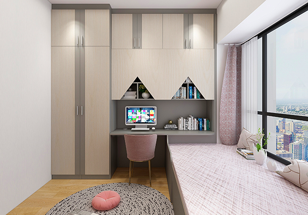 榻榻米+書(shū)桌+儲(chǔ)物柜+衣柜,平常可以做作業(yè)、看書(shū),多功能室完成,既是書(shū)房也是臥房,儲(chǔ)物能力MAX。