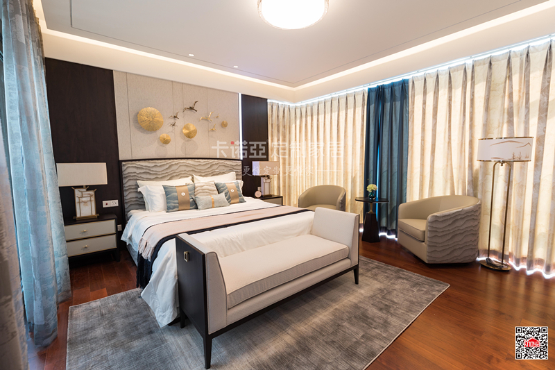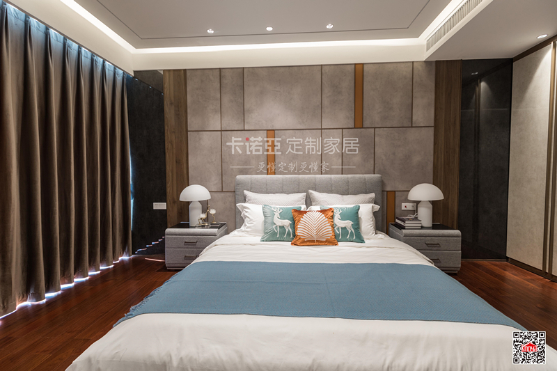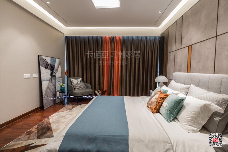 雖然主調(diào)是簡(jiǎn)約風(fēng),但是臥房整體自帶奢華感。