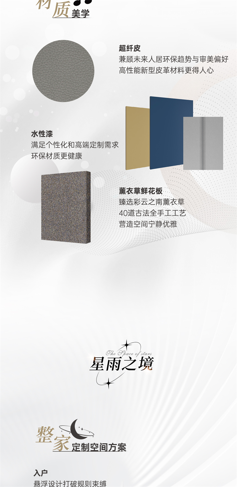 2024年新品系列,星雨 |雅奢風(fēng)格 該系列產(chǎn)品采用柔和的色彩搭配和浪漫的元素點(diǎn)綴,打造溫馨浪漫的家居氛圍。閑在臥室:演繹高端人居雅奢生活 ,沉浸精智臥室空間,暢享居家儀式感,將生活舒適與當(dāng)代美學(xué)精細(xì)度融合