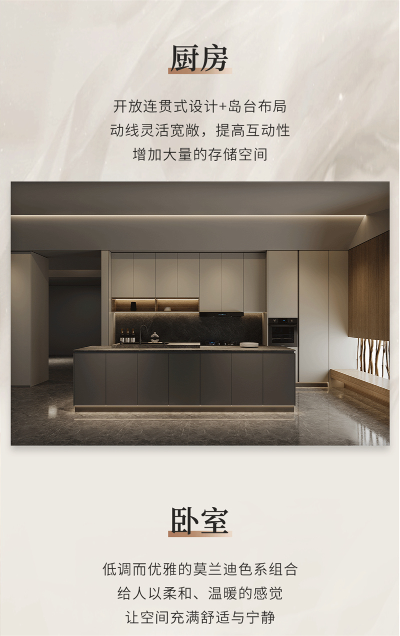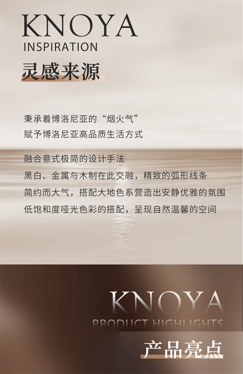 博洛Ⅱ | 極簡風(fēng)格質(zhì)感生活 內(nèi)外兼修 有顏有質(zhì) 健康環(huán)保融合意式極簡的設(shè)計(jì)手法,黑白、金屬與木制在此交融,精致的弧形線條簡約而大氣,搭配大地色系營造出安靜優(yōu)雅的氛圍,低飽和度啞光色彩的搭配,呈現(xiàn)自然溫馨的空間。