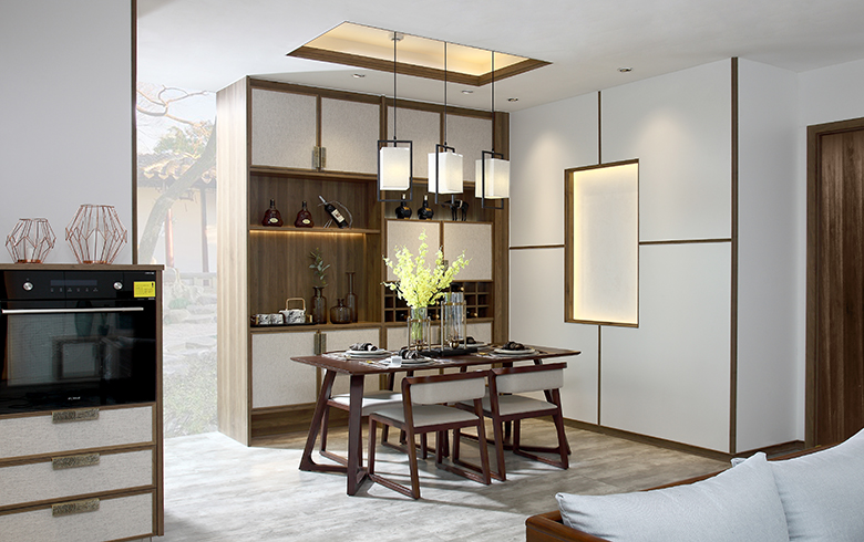 君子遠(yuǎn)離庖廚,煙雨江南廚房讓人愛上下廚。新中式廚房更注重實(shí)用性,L型廚柜設(shè)計(jì)科學(xué)合理的操作動(dòng)線,遵從洗、切、炒的料理順序,讓美味佳肴在行云流水的烹飪中輕松搞定。
