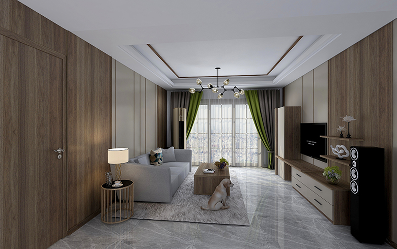 客廳護(hù)墻系統(tǒng)采用原木色與灰色的撞色設(shè)計(jì),大小不一、顏色不同的板材拼接帶來的錯(cuò)落感,專利扣線與御品木自帶的線條相呼應(yīng),豐富了色彩層次感,營造時(shí)尚、高挑的都市現(xiàn)代簡約客廳。