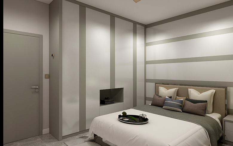 采用尼泊爾柚木+深灰風(fēng)之谷的撞色創(chuàng)意搭配方案,色系深淺結(jié)合,空間線條感及幾何造型強(qiáng)烈,既不顯得單調(diào),又具空間層次感。