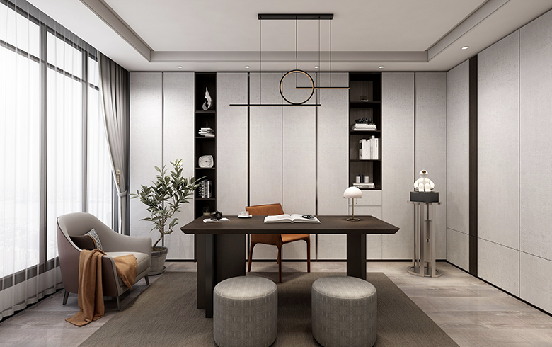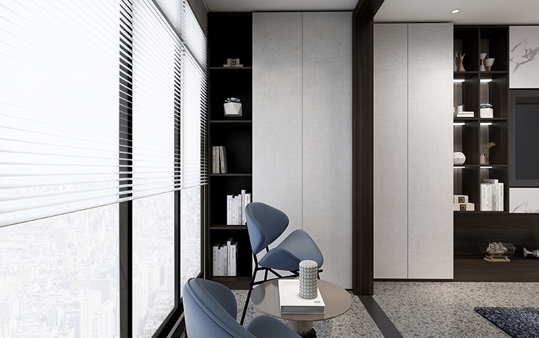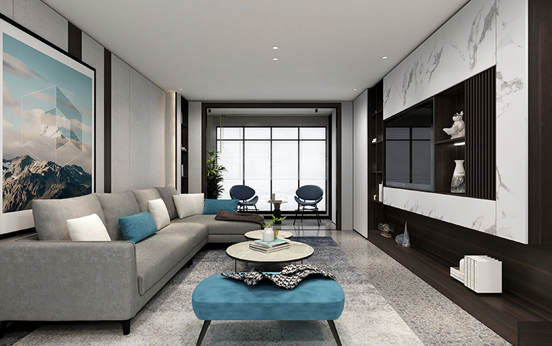 該方案為極簡系列,現(xiàn)代風(fēng)格。本方案設(shè)計(jì)靈感來源于鴉頭棕雀的鳥巢,整體空間以木紋色為主,采用淡藍(lán)色為輔助色作為點(diǎn)綴??臻g戶型面積約為103m2,大致分為客餐廳、陽臺、廚房、衛(wèi)生間、主臥、次臥以及書房。動靜分區(qū),互不干擾。整個(gè)客餐廳色調(diào)有淺灰、黑色兩個(gè)色調(diào),視覺上顯得統(tǒng)一。廚房設(shè)計(jì)為L型。主臥床頭背景設(shè)計(jì)兩層,第一層與柜體顏色相呼應(yīng);第二層與柜門顏色呼應(yīng)。顏色統(tǒng)一,層次與立體感強(qiáng);通過橙色調(diào)進(jìn)行點(diǎn)綴,增加空間的靈動性。次臥的主色調(diào)是淺灰色,是深受現(xiàn)代主流的配色,給人一種親近的感覺。書房背景以淺色與護(hù)墻的顏色統(tǒng)一,但橙色最為點(diǎn)綴,不會顯得單調(diào)沉悶。
