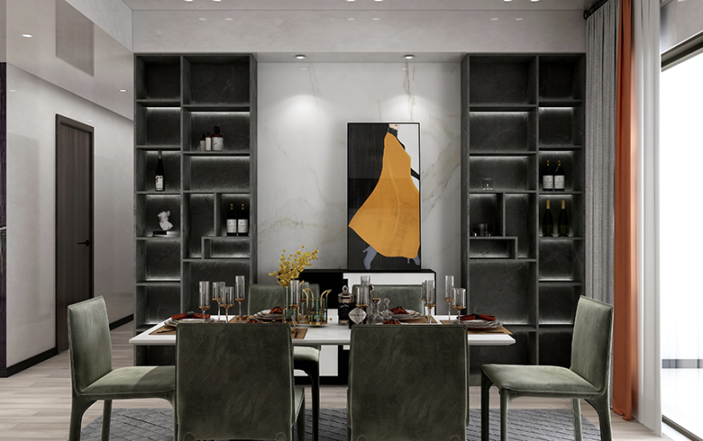 本案為碧桂園·天薈265平大平層的現(xiàn)代極簡風(fēng)格案例?,F(xiàn)代派的極簡主義在滿足功能的基礎(chǔ)上,不斷的做減法, 反對形式化和裝飾化,拋棄不必要的細節(jié)而強調(diào)物體本身的美,主張功能化和理性化的設(shè)計理念,加上對材料和色彩的考究、運用,在設(shè)計師的偏執(zhí)喜好里,掀起對“黑的溺愛”的藝術(shù)思潮。