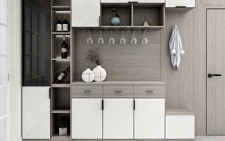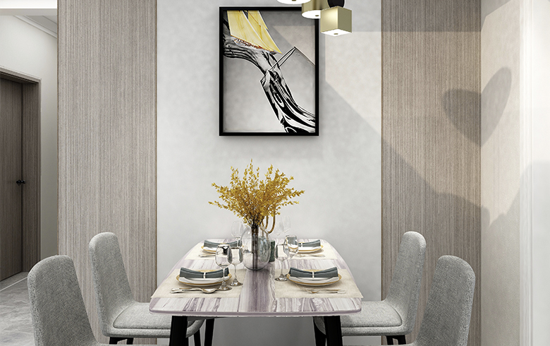 從玄關到客廳,再至餐廳,廚房,臥房,書房,空間主角都是灰色,白色,溫馨的銀絲木與珍珠白的柜體突顯優(yōu)雅又帶來溫馨的家氛圍。