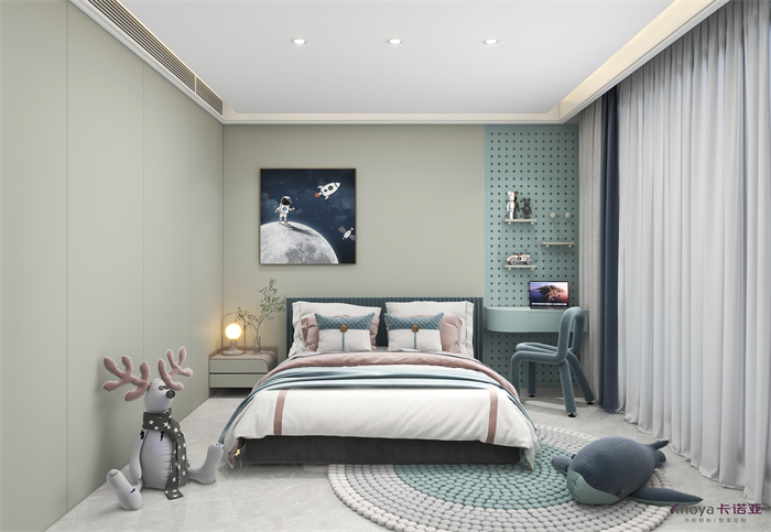 本案設(shè)計(jì)圍繞客戶的需求,打造出一個(gè)簡(jiǎn)約優(yōu)雅的空間。同時(shí),圍繞小主人公成長(zhǎng)加入趣味,運(yùn)動(dòng)等主題,拆除多余墻體,合理規(guī)劃空間,人體動(dòng)態(tài)路線便捷。空間多元化收納,功能分區(qū)明顯。
