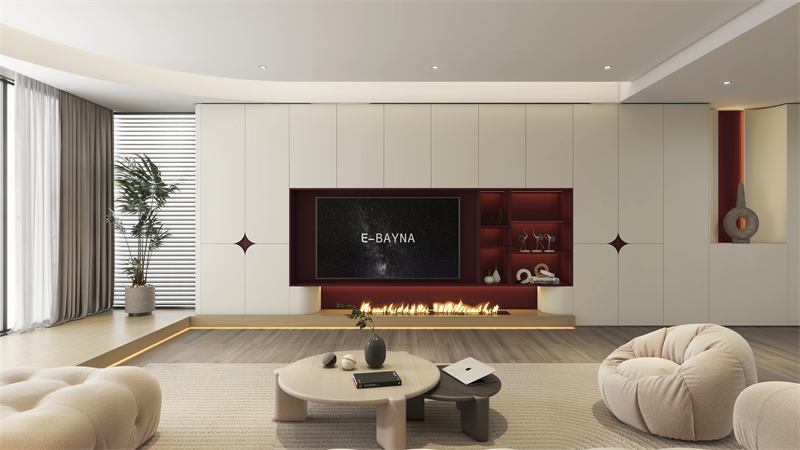 懸空電視柜撞色設(shè)計(jì),搭配弧狀拼接護(hù)墻板,保留奶油風(fēng)溫馨基調(diào)又增添幾分和諧且富有層次感的視覺(jué)效果,讓空間輕盈靈動(dòng)。