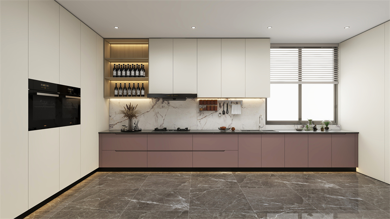 針對(duì)廚房潮濕高溫的特殊環(huán)境,櫥柜采用噴粉定制柜,360°環(huán)繞防潮覆蓋,耐黃不變色,樹(shù)脂粉末高溫固化,色彩更耐看,打造高級(jí)溫柔的廚房?!芭悍邸迸c“白芷”搭配,溫暖柔和的色調(diào),清新唯美的廚房空間,實(shí)現(xiàn)功能和美觀的統(tǒng)一,讓下廚時(shí)光變得優(yōu)雅從容。