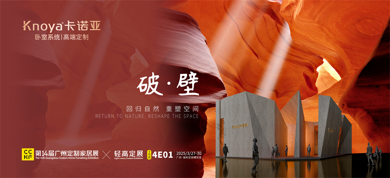 2025年3月27日至30日,廣州定制家居展暨輕高定展在廣州保利世貿(mào)博覽館舉行。專注定制家居24年,卡諾亞將以“破·壁——回歸自然,重塑空間”為主題,首度攜兩大輕高定新品系列登陸4號(hào)館4E01展館,重磅亮相展會(huì),不僅以差異化高端工藝、天然珍稀材質(zhì)、原創(chuàng)設(shè)計(jì)語言重構(gòu)家居美學(xué),更通過展館深度詮釋從產(chǎn)品定制到生活方式定制的設(shè)計(jì)邏輯,為觀眾帶來一場(chǎng)沉浸式的自然美學(xué)探索之旅。