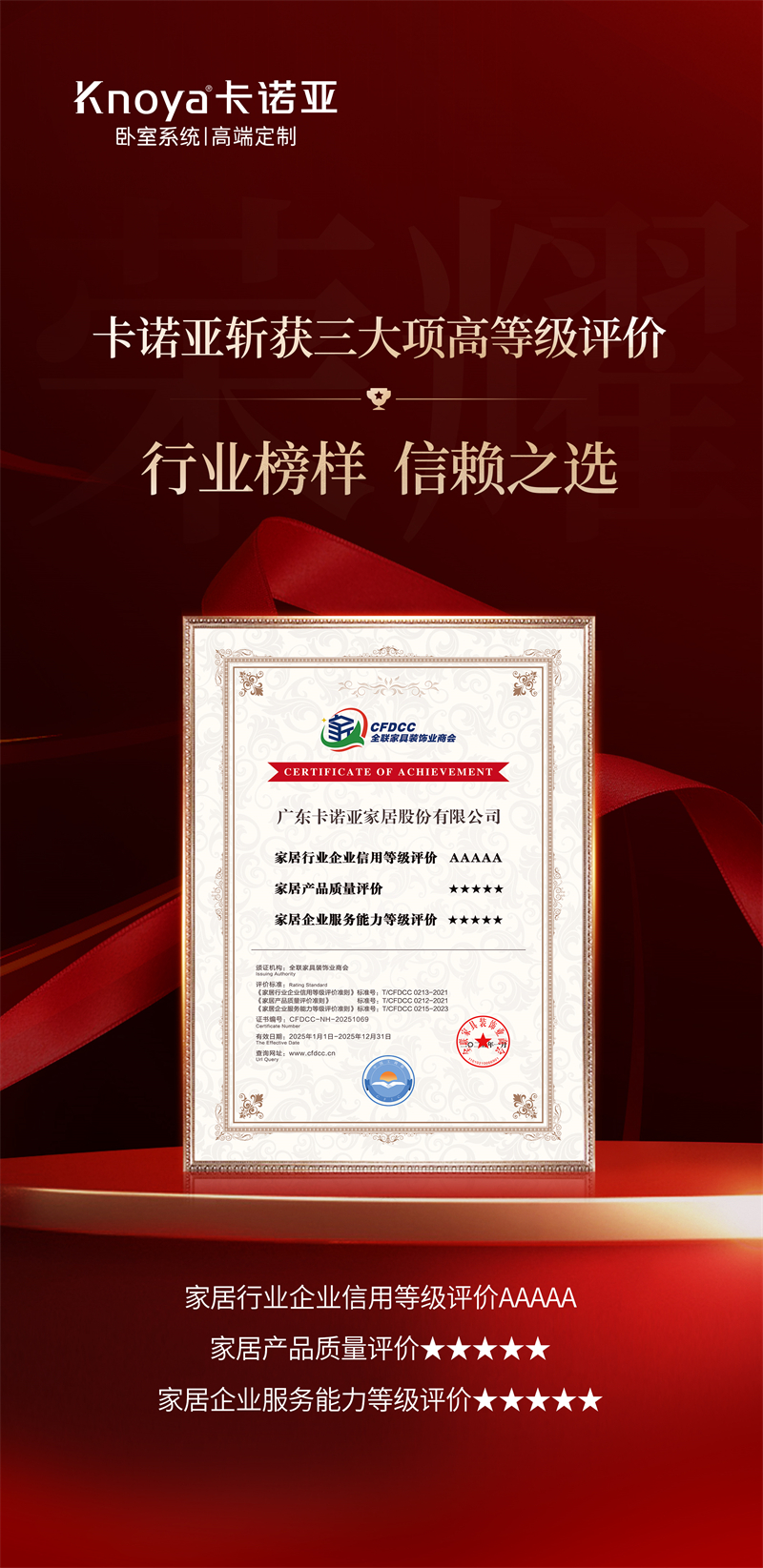 此次卡諾亞獲得3項高等級認證,不僅是對其24年以來堅守品質(zhì)、誠信經(jīng)營、用心服務(wù)的高度認可,更是對其未來堅守初心、向上而行的激勵與鞭策。未來,卡諾亞將堅守“發(fā)展以人為本,品質(zhì)源于細節(jié),服務(wù)創(chuàng)造價值”的經(jīng)營理念,通過“臥室系統(tǒng)”和“整家定制”兩大品類的不斷深耕,為客戶提供更高品質(zhì)、更高水準的一站式、個性化全案尊享服務(wù)。