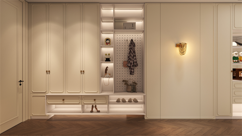 推開門的瞬間,羅亞用香頌白的柜體營造出如巴黎公寓般的迎賓氛圍。法式的線條營造溫馨浪漫情調,以獨特和優(yōu)雅的方式融合古典與現(xiàn)代風格。法式線條勾勒的玄關柜不僅滿足收納需求,更讓歸家成為一場視覺享受。