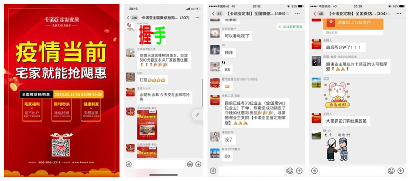 同時(shí),卡諾亞積極探索未來(lái)競(jìng)爭(zhēng)新模式。2月13日/15日,籌備半個(gè)月的全國(guó)微信搶購(gòu)惠爆破活動(dòng)線(xiàn)上落地,眾志成城、攻城略地,在營(yíng)銷(xiāo)和運(yùn)營(yíng)推廣團(tuán)隊(duì)的積極動(dòng)員、強(qiáng)力執(zhí)行之下,全國(guó)各戰(zhàn)區(qū)微信群爆滿(mǎn),客戶(hù)下單不斷,銷(xiāo)售業(yè)績(jī)突破新高,實(shí)現(xiàn)了卡諾亞2020年開(kāi)年的首戰(zhàn)告捷!