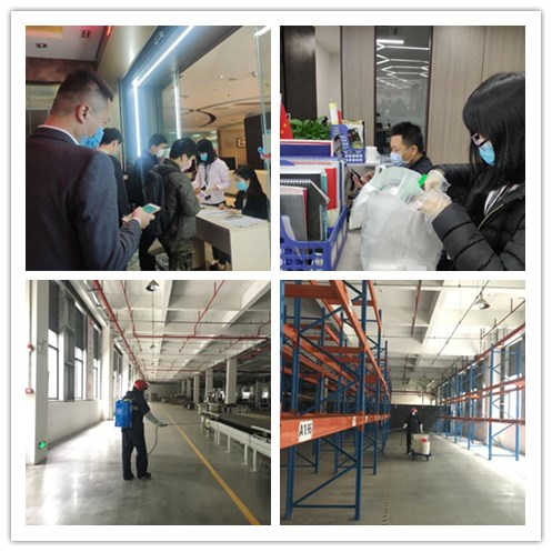 開(kāi)工在即,卡諾亞對(duì)工廠(chǎng)、辦公環(huán)境實(shí)行全面消毒管理,全面排查員工的健康狀況。2月17日復(fù)工日,卡諾亞做足了防范措施,包括口罩、消毒水、體溫槍等防疫“法寶”裝備準(zhǔn)備到位,員工的健康安全,是企業(yè)正常復(fù)工、做好服務(wù)工作的重要前提。