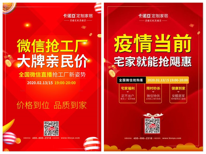 被疫情隔離的潛在裝修需求,有了線上的助力,迅速爆發(fā)出巨大潛力。眼下部分企業(yè)剛剛開始復工,物流也尚未恢復正常,對于有裝修需求的用戶而言,提前做好裝修規(guī)劃,未嘗不是宅家的另一種選擇。因此,卡諾亞采取線上微信搶購、限時優(yōu)惠等多元銷售模式,并加強與線上消費者的溝通和互動,2月27日還將開啟“卡諾亞定制家居3·15品質直播盛典”。至此,卡諾亞率先掀起的新零售模式,將成為疫情期間家裝銷售的重要渠道。