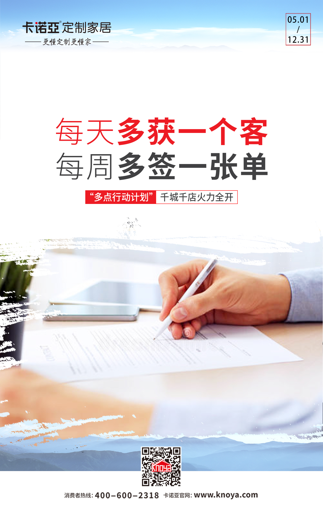 為此,卡諾亞“多點(diǎn)行動(dòng)計(jì)劃”的“每周多簽一張單”的核心是提升店面專業(yè)服務(wù)能力,內(nèi)容涵括店面形象、目標(biāo)管控、人員素質(zhì)、方案設(shè)計(jì)、待客流程等多個(gè)層面,通過貼心細(xì)致的服務(wù),提升店面成交率,尤其是提升駐店設(shè)計(jì)師的專業(yè)設(shè)計(jì)與營(yíng)銷能力,站在全屋“空間定制,省錢省事”的設(shè)計(jì)高度,為消費(fèi)者“提供家居整體解決方案,創(chuàng)新引領(lǐng)人類健康生活”。