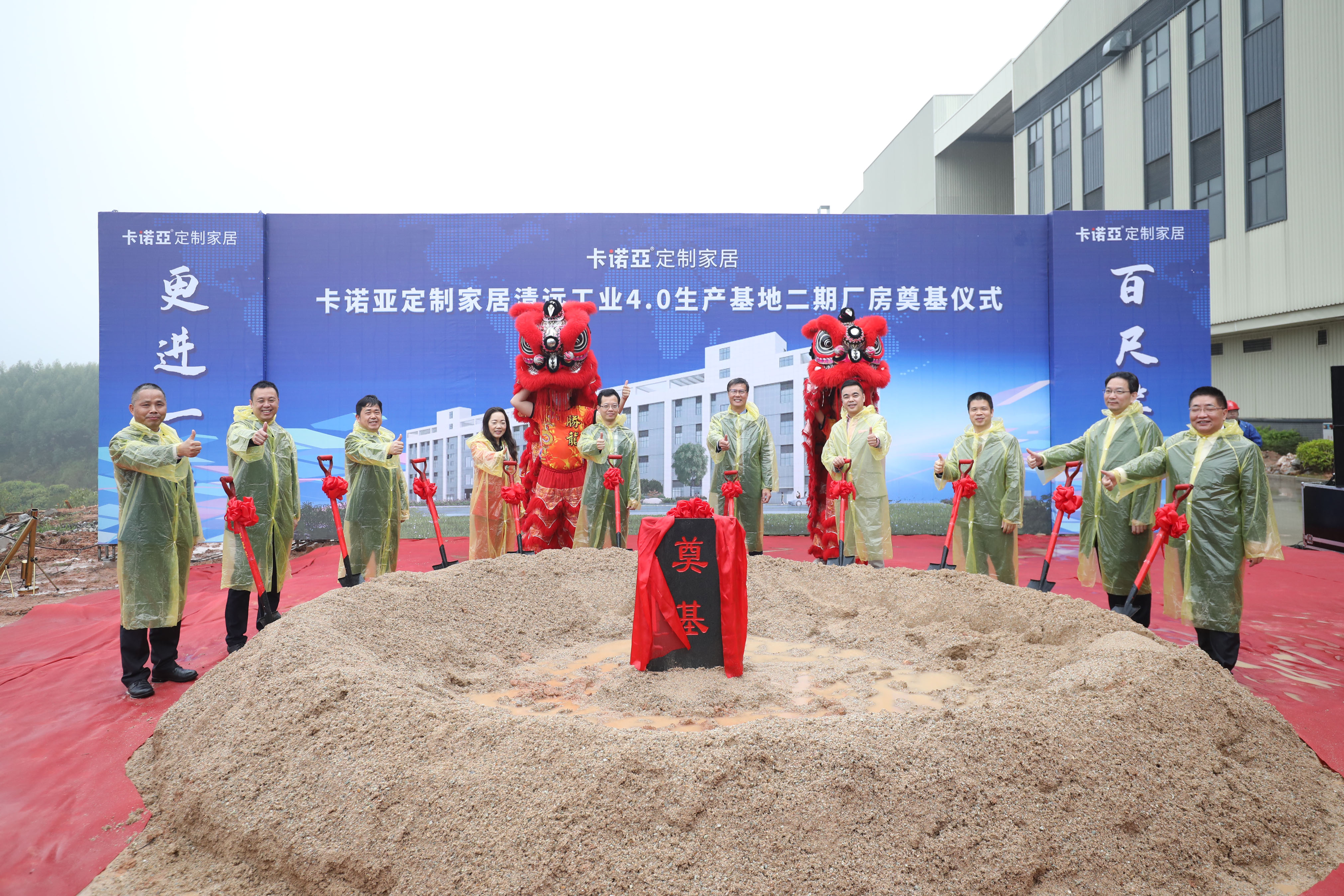 3月6日上午,以“百尺竿頭,更進(jìn)一步”為主題的卡諾亞定制家居清遠(yuǎn)工業(yè)4.0生產(chǎn)基地二期廠(chǎng)房奠基儀式,在清遠(yuǎn)市清城區(qū)源潭鎮(zhèn)峽山工業(yè)園隆重舉行??ㄖZ亞定制家居董事長(zhǎng)兼總裁程國(guó)標(biāo)先生、執(zhí)行董事吳紹華女士、副總裁兼生產(chǎn)中心總經(jīng)理葉喜都先生、副總裁兼營(yíng)銷(xiāo)中心總經(jīng)理賴(lài)永精先生、工程公司總經(jīng)理葉建中先生、董事會(huì)秘書(shū)萬(wàn)成文先生等公司“董高監(jiān)”人員,以及當(dāng)?shù)卣I(lǐng)導(dǎo)、行業(yè)協(xié)會(huì)領(lǐng)導(dǎo)、客戶(hù)代表、供應(yīng)商代表、中介機(jī)構(gòu)代表、媒體朋友等嘉賓參加了儀式。