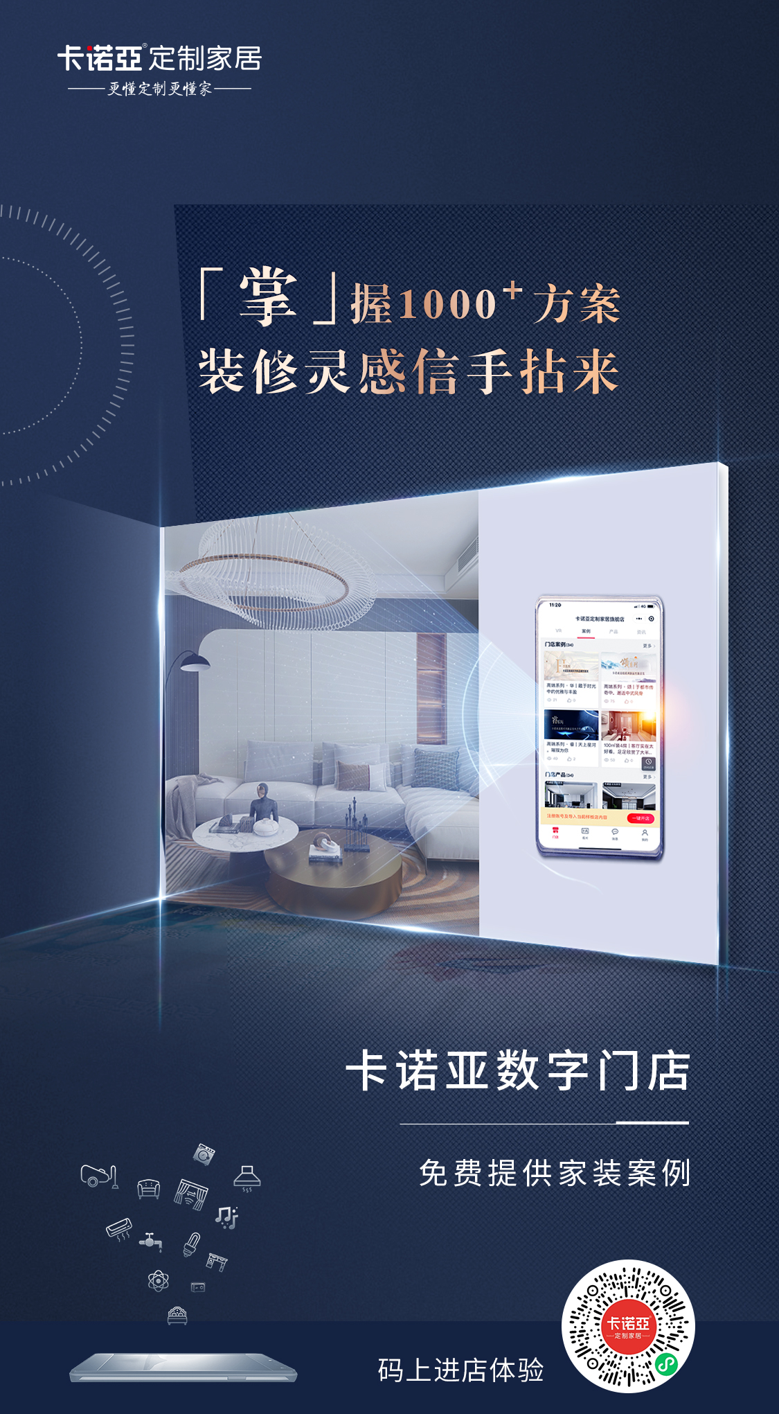 而現(xiàn)在,無論是全國各地任何一個地方的消費者,想定制一套家具,只需要在家掃碼瀏覽卡諾亞定制家居數(shù)字門店,無需多次勞心勞力造訪實體門店,即可瀏覽了解品牌實力、業(yè)主裝修案例、產(chǎn)品庫、優(yōu)惠活動、樣板間等,輕松完成購買決策前大量繁雜的工作。