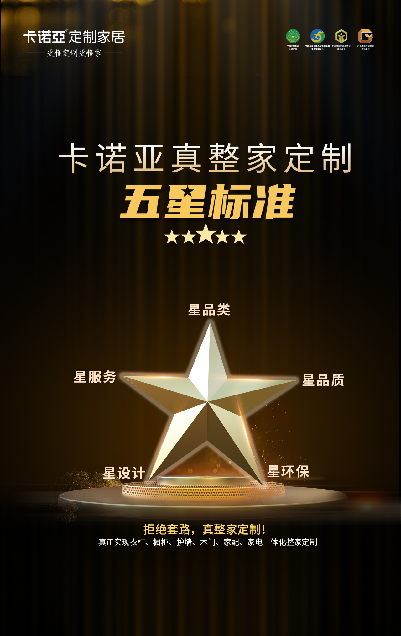 卡諾亞敢于說自己是真整家定制,底氣何在?讓我們來看一看卡諾亞的5星標準、4大支撐點——